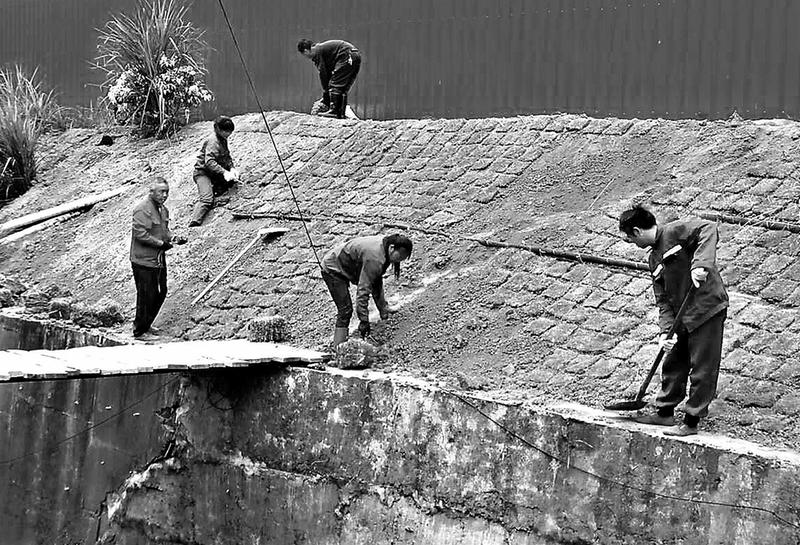 为了美化矿区环境,漳平煤业公司吾祠煤矿组织人员对矿区边坡进行绿化。图为4月8日,该矿员工正在边坡种植草皮。(沈建霞摄)