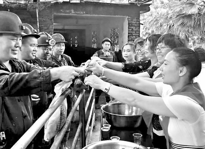 硐口走去。扁担被粽子压成了弧线,汗水浸湿了秀发,可笑容却盈满了家属们的脸庞。