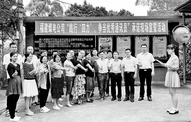 5月30日上午,福建煤电公司开展“践行‘四力’,争当优秀通讯员”承诺宣誓活动,25名通讯员在优秀通讯员代表韩艳的领誓下郑重承诺。