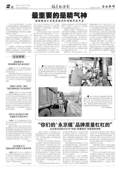 “你们的‘永京煤’品牌质量杠杠的”永安煤业运销分公司“党建+质量服务”助推煤炭销售