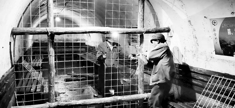 近日,天湖山能源公司含春煤矿对井下所有巷道旧栅栏按统一标准设置进行全面整改,夯实安全生产基础。图为通风组人员在井下主平硐800米候车硐室设置一套标准栅栏供一线职工观摩对照。(姚文华摄影报道)
