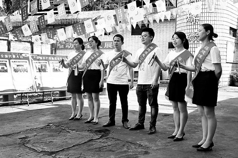 6月18日,福建煤电公司开展的党史巡回展来到龙潭煤矿,为该矿带来中国共产党历次全国代表大会党史展板内容的同时,还组织快板队到场助力说党史,营造更加浓厚的党史学习教育氛围。(陈思忠摄影报道)
