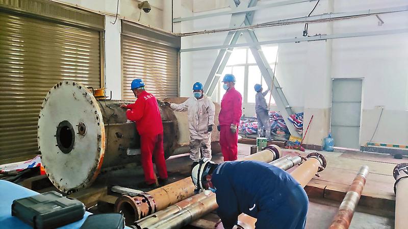 1月19日,晋江气电公司1号机组D修顺利结束。作为2022年“开春第一修”,该公司坚决落实缺陷处理、隐患消除,全力保障机组设备安全稳定,捍卫春节期间保电阵地。图为外委检修队伍正在开展检修作业。