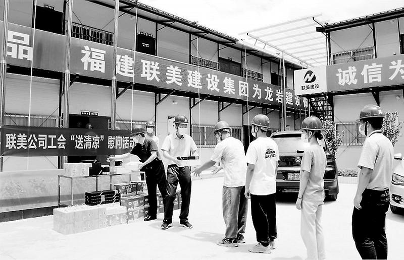 8月19日,联美公司工会主席洪元春一行到美伦·生态城项目开展“送清凉”慰问活动,为在连续高温天气下持续奋战的一线职工送去“娘家人”的关心问候。(郑招华 李招香 摄)