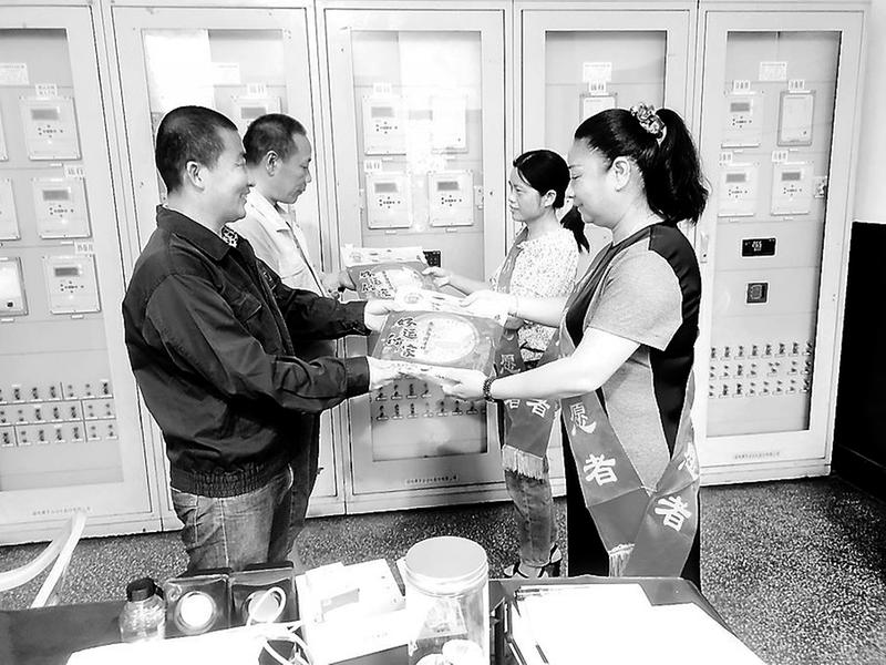 中秋前夕,福建煤电电力安装检修公司开展“迎中秋、保安全””活动,公司党团志愿者深入变电站区将象征“团圆”的月饼送到员工手中,向坚守岗位的员工送去了节日祝福和安全嘱托。(张萍 摄)