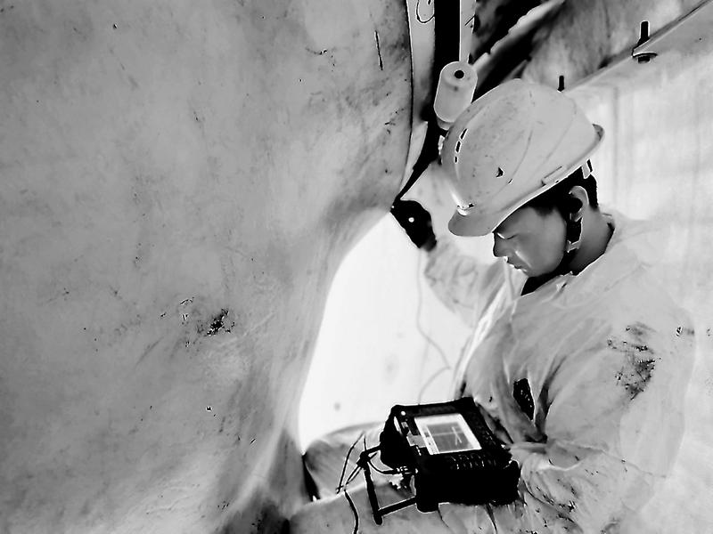 近期,福能新能源公司省山风电场利用相控阵超声检测仪、磁粉检测仪等高精度仪器为风机轴承等大部件进行了一次“深度体检”,并建立风机健康档案,为保障设备的长期安全高效运行提供了依据。图为9月19日,工作人员正在对风机叶片轴承进行超声检测。(江伟忠 黄镇南摄)