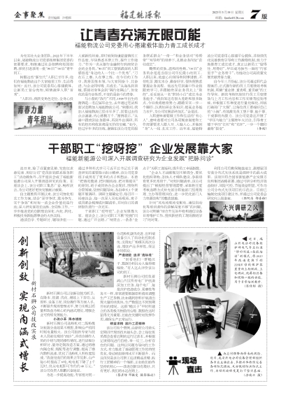 自主题教育开展以来,该公司细化相关工作方案,结合“深学争优、敢为争先、实干争效”和对标一流企业价值创造行动,深入研究谋划长远性、全局性工作,一步步推进党的创新理论深化、内化、转化,积极投身新能源事业的火热实践。
