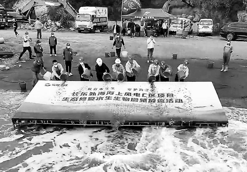 7月11日,福能海峡公司在长乐文武砂镇外海海域开展西施舌、文蛤苗增殖放流活动,在地方海洋渔政主管部门现场监督公证下,放流西施舌和文蛤苗约1000万粒,为东海海域注入新的生命与活力。(李智福 摄)