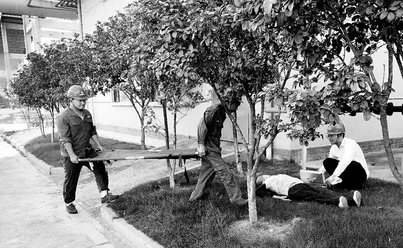 福建煤电电力安装检修公司龙安项目部常态化开展技能练兵、技能比拼,组织现场处置方案和“一事一卡一流程”应急演练,确保各类突发事件及时有效处置。图为7月17日,该项目部参加龙安热电2024年压缩空气故障现场处置事故应急救援演练现场。(陈先英 摄)