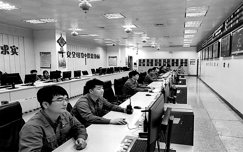 五一期间,古雷热电公司全体员工用坚守诠释责任,以奋斗展现担当。图为运行人员监控运行参数。