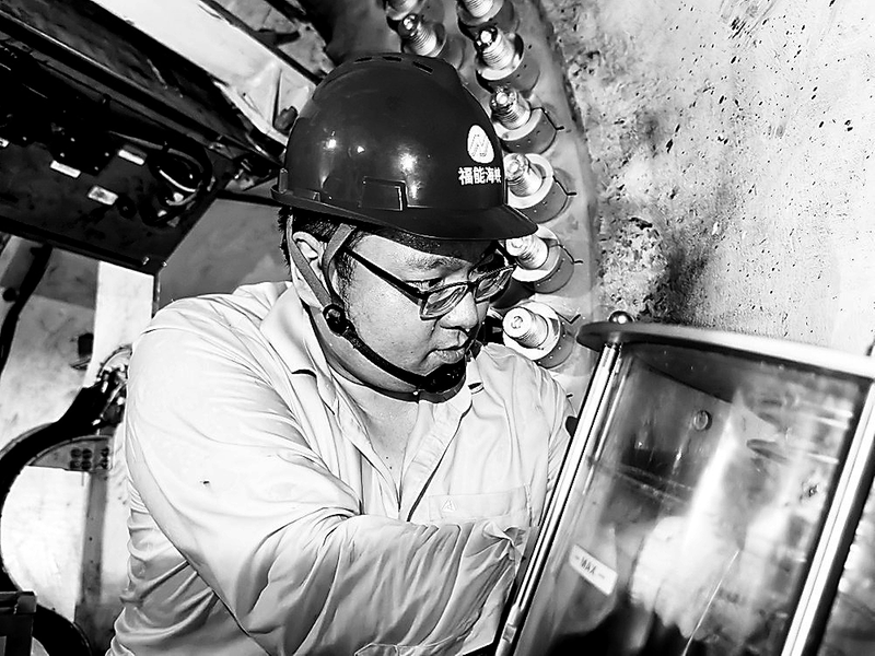 轮毂内部管线交错、设备密布,加上炎热高温的环境,对检修员的专注度和耐心提出了极高要求。狭小的空间内,检修员只能半蹲或侧身作业,连拧动润滑油缸螺栓都需一手撑住舱壁借力,一手精准控制工具角度,看似基础的拆装,每一步都要在高温炙烤下保持手眼协调,稍不留神就可能碰损周边部件,必须时刻保持小心谨慎。
