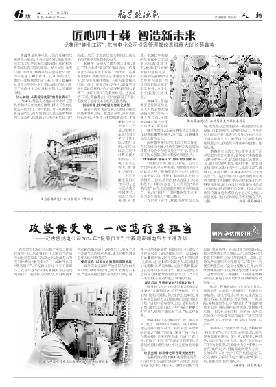 在江阴搬迁项目的12年里,他与团队成员共同努力,完成37项仪表 技 术 改进。在2023年实施的热电化水工序控制系统改造项目中,他通过巧妙解决新旧盘柜更换、控制系统差异时的电缆接入问题,为项目顺利推进奠定坚实基础,为企业创造显著经济效益。