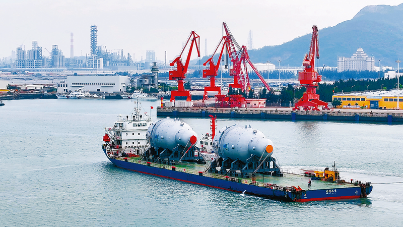 12月20日,刷新世界制造纪录的两台EO(环氧乙烷)反应器顺利运抵漳州古雷港九龙江古雷码头,标志着总投资448亿元的中沙古雷乙烯项目圆满完成了所有大型关键设备的海运任务,为项目早日建成投产奠定坚实基础。