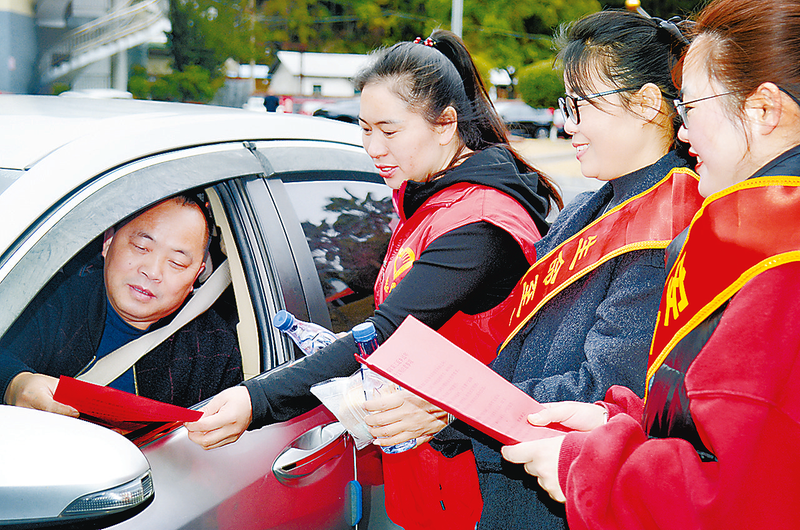 2月7日,永安煤业公司仙亭煤矿开展春节返乡职工“送祝福、嘱平安”主题活动。该矿女工安全协管员、矿山志愿者为返乡职工及家属递上慰问品,同时向返乡职工及家属分发春节返乡安全文明注意事项宣传单。(薛文勇 摄)
