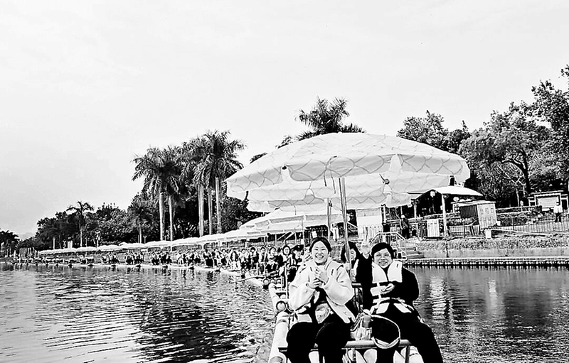 石狮热电公司开展“柔肩担使命,巾帼绽英姿”妇女节主题活动。图为女职工们泛舟龙津江,体验“游龙船”的惬意。 (苏永洪 摄)