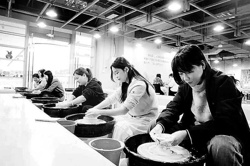 鸿山热电公司组织女职工走进德化,开展“瓷韵润巾帼,匠心筑华章”主题活动。图为女职工们在体验手拉坯。 (林钦 摄)