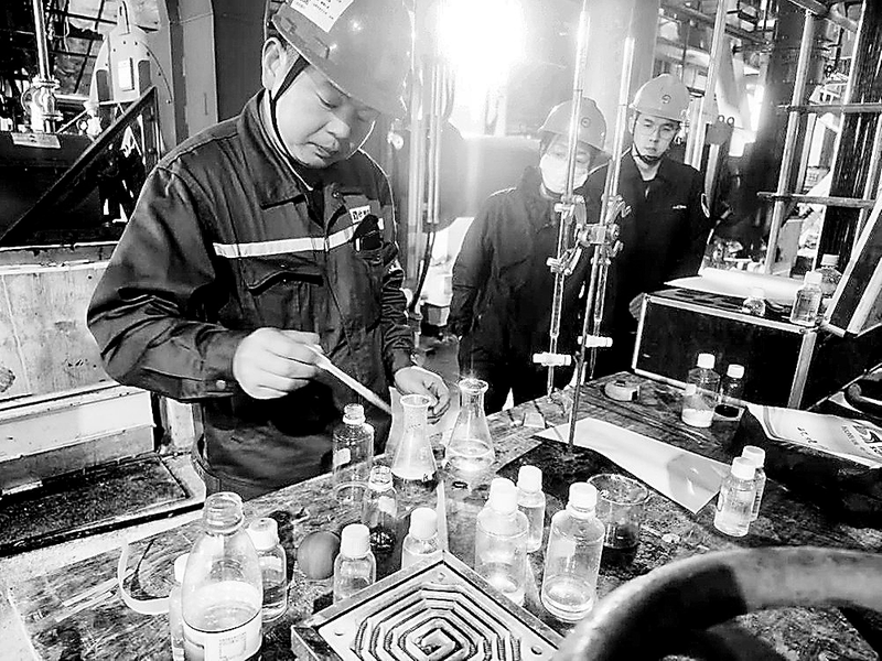 3月1日,古雷石化基地热电联产南部二期项目5号锅炉酸洗工作顺利完成。作为项目建设的关键节点之一,此次酸洗任务的圆满完成,为后续锅炉点火吹管及机组整套启动奠定了坚实基础。图为酸洗循环化验分析。 (陈木炳 林传崟 摄)