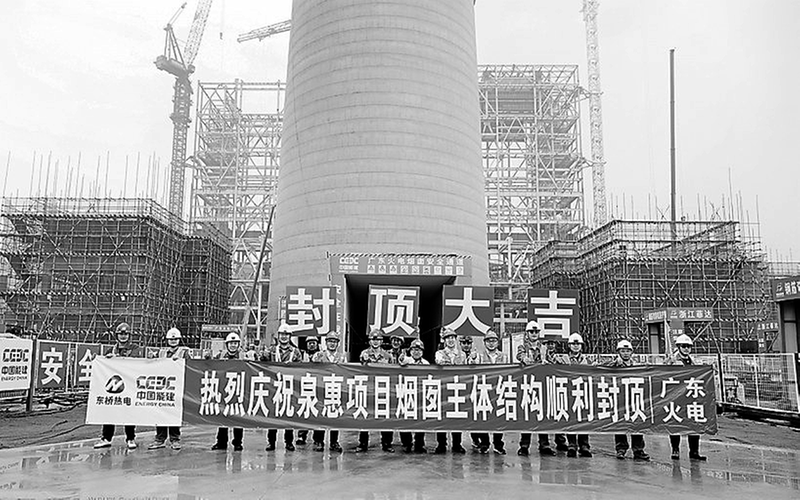 3月31日上午9时,东桥热电公司泉惠石化工业区2×660MW超超临界热电联产工程迎来关键节点——烟囱筒壁混凝土结构顺利封顶。本次顺利封顶的烟囱筒壁总高达200米,项目团队全力攻克各项施工难点,最终较计划工期提前两个多月圆满实现结构封顶。经检测,烟囱整体倾斜率、平均总沉降量两项关键指标均大幅优于设计及规范控制标准。 (郭超溢 吴秀娜 摄)