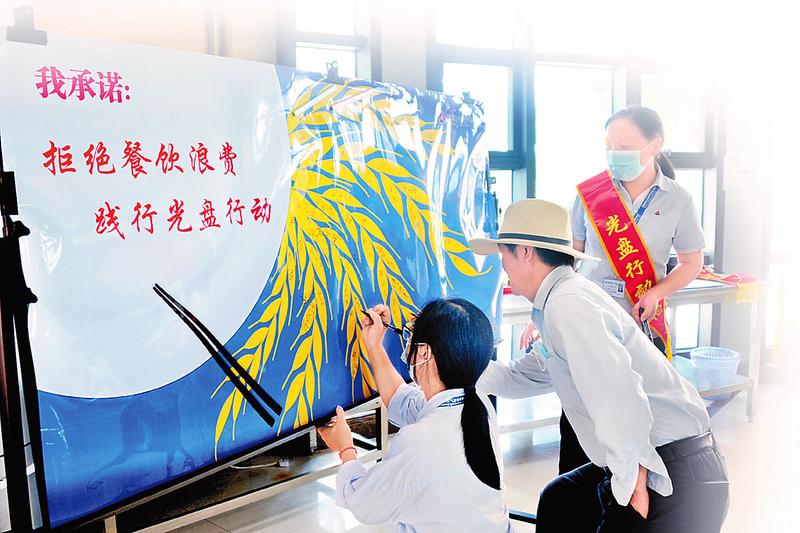8月27日中午,因疫情错峰用餐的职工发现食堂多了两个身披“光盘行动倡议者”绶带的人,他们邀请前来吃饭的职工到白板上签名。白板的左上角画了一个白碟子,赫然写着:“我承诺,拒绝餐饮浪费,践行光盘行动”,环绕着碟子的是一串串麦穗。原来,这就是公司开展“拒绝浪费、光盘行动”活动的其中一个场景,职工们把自己的名字签在金色的麦穗之中,形成颗粒饱满的麦子,提醒自己“粒粒皆辛苦”,对拒绝餐饮浪费作出郑重承诺。