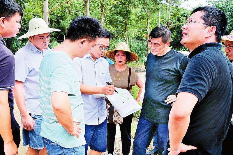 8月19日~20日,福能新材华安机制砂项目设计团队及专家到矿山实地踏勘,并按照专家意见修改、完善、落实项目方案,提供项目用地红线图。(袁道霞 摄)