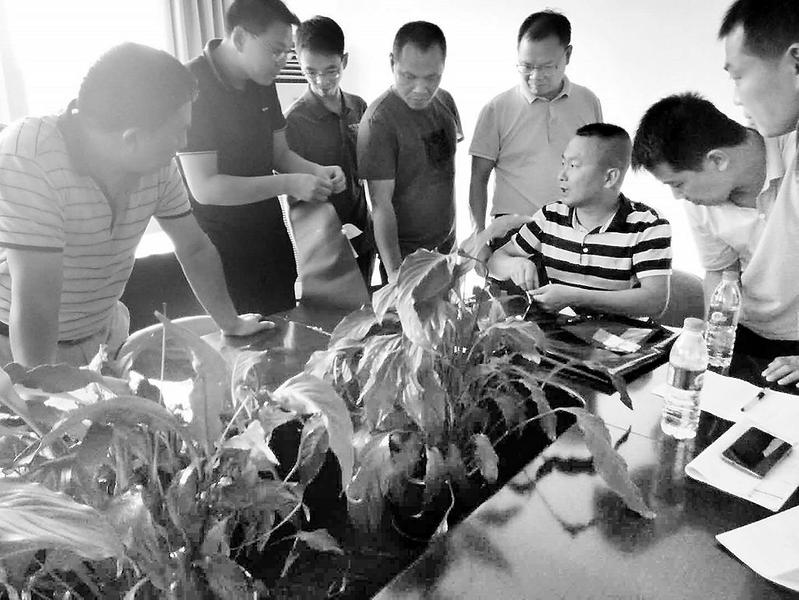 9月10日下午,漳平煤业供电供销公司举行常用物资矿用风筒专场评标会。图为评标成员正在对矿用风筒布材料样品进行抗拉测试与阻燃试验。(廖燕熠 摄影报道)