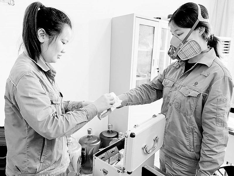 近日,福州福化环保公司组织开展“安全生产月”系列安全实践活动。图为公司员工开展强酸强碱泄漏处置演练现场。(郭春梅 林婷 罗秋芳 摄影报道)