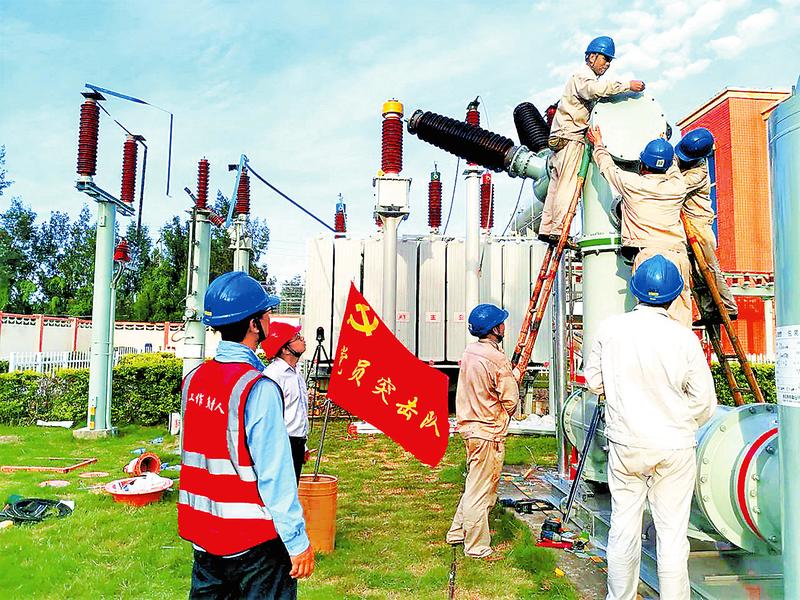 6月29日,福能新能源公司石城风电场110kV升压站开展年度检修工作。维检中心党支部党员与检修人员冲在一线,直面炎夏“烤”验,进行GIS组合电气设备技改维护,保障迎峰度夏安全供电。(赖诗剑摄)