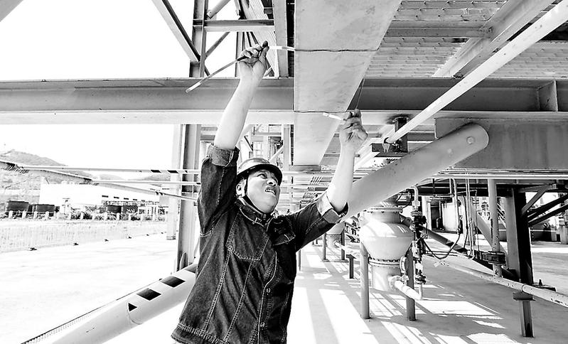 连日来,龙安热电公司员工坚守岗位做好设备设施维护,确保暑期正常供热发电。图为7月5日,该公司工人正在紧固电缆桥架盖板。