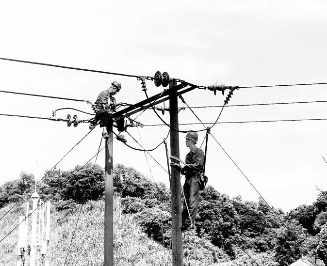 7月12日,福建煤电电力安装检修公司员工头顶烈日在高空上作业,对辖区一条10千伏架空线路进行检修维护,保障矿井生产生活用电。