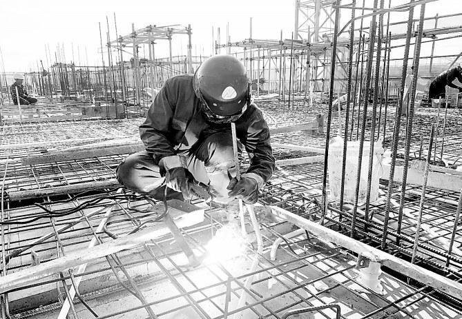 7月11日,龙岩“美伦·生态城”的员工穿戴专业工服,在高温下持焊钳进行等电位接地焊接施工,精益求精地做好每一个细节,保证每一次焊接的焊缝部位都能达到合格。(徐宗鹭 摄)