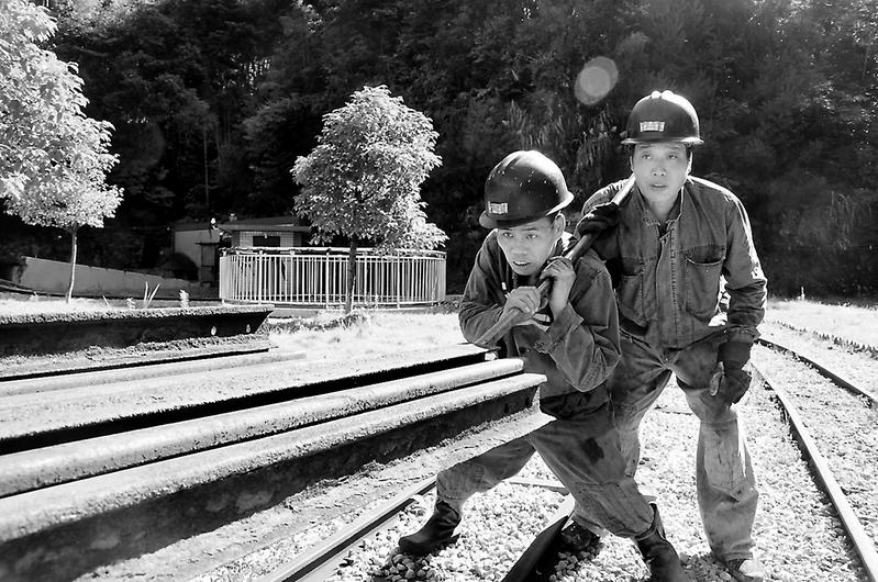 7月21日,永安煤业公司池坪芦坑煤矿室外温度高达39摄氏度,为了抓好生产工作,该矿职工正冒着高温在+800m工业广场备井下生产所需的轨道。(陈思洲 摄)