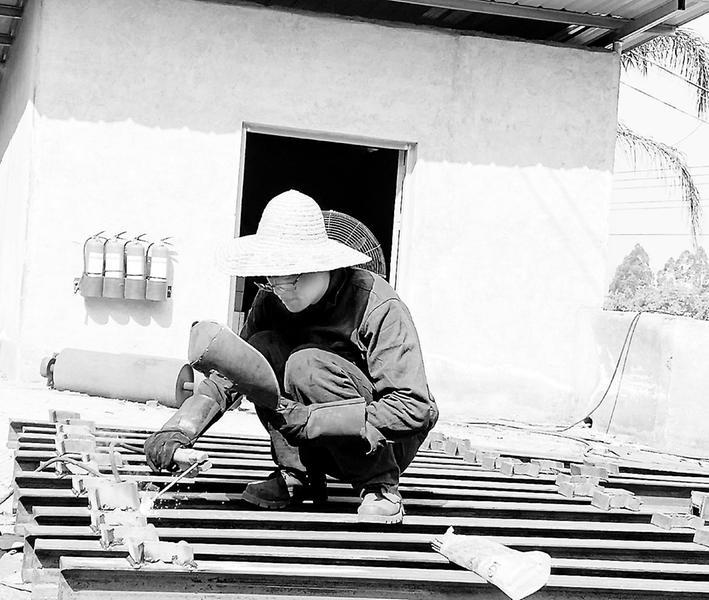 福建煤电公司翠屏山煤矿机修工人不惧“烤”验,认真做好井下生产物料加工制作,确保供应“不掉链”。图为近日,该矿机修工人正在加工制作金属支架。 (温晓兰 陈定华 摄)