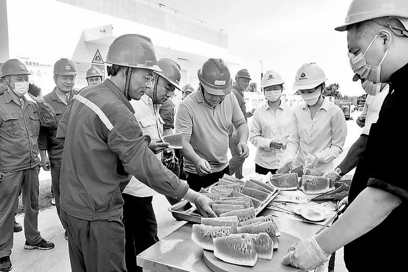 自入伏以来,为做好防暑降温工作,晋南热电公司工会开展形式多样的“夏送清凉”活动。图为7月26日,该公司慰问小分队深入工作现场,为一线职工送去西瓜和西柚蜂蜜茶。