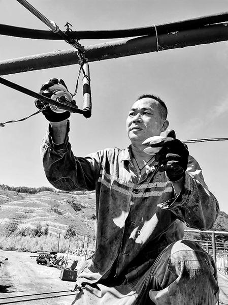 近日,为保证矿井运输线路畅通无阻,永安煤业公司水井坑机电修职工头顶炎炎烈日,第一时间排除供电线路故障,及时恢复电机车运转。(邹超男 摄)