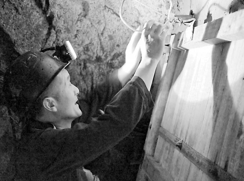 简启良在井下进风巷道检查风门闭锁装置的可靠性