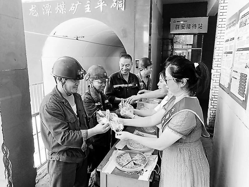 9月5日,煤电公司龙潭煤矿女工委组织女工协管开展“迎中秋·送祝福”活动,为一线职工送上节日祝福和安全嘱托。