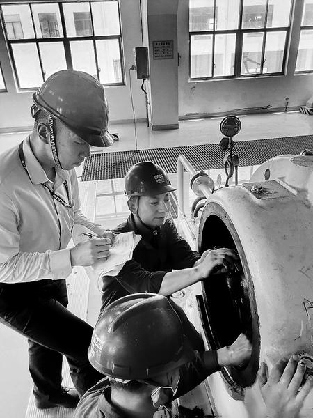 时间紧、任务重,汽机专业经过精心组织、周密部署,合理安排检修人员。随着缸温降至150℃,#3、#4瓦检修工作的号角正式吹响。行车将汽轮机瓦盖缓缓吊起,检修人员严格按照检修文件包步骤、标准及工艺要求,分工协作,紧盯作业现场,吊出轴承上盖、测量瓦盖紧力、轴瓦固定螺栓的检查、瓦顶、瓦口间隙测量……高温天气加上汽机房内特有的闷热,即便架上了通风风机,近40℃的环境仍令检修人员仿佛置身于烤炉一般,身上的工作服和手套在被汗水浸湿和被高温“烤”干之间反复切换。深夜,#1机组区域依旧灯火通明,行车缓缓运行,大锤挥舞着与敲击扳手亲密接触,汽机点检工程师拿着手电对着轴瓦检查、测量出来的数据与标准值比对。为了保证在短时间内保质保量完成#1汽机#3、#4轴承翻瓦检修工作,检修人员依旧坚守在岗位上,一项项工作有条不紊地进行着……