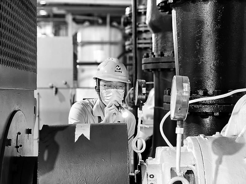 室外气温30℃时,鸿山热电公司汽机房内温度已达38℃。近日,该公司发电部巡检人员对设备进行巡查,保证机组在迎峰度夏期间正常运行。(陈彦摄)