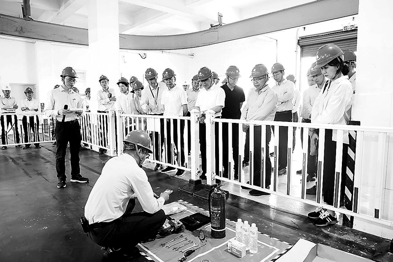 6月24日,福建能源石化集团在鸿山热电公司举办承包商管理经验交流暨现场观摩活动。集团电力事业部、石化事业部、石化投资部及各权属电力、石化、综合板块28家企业代表70余人参加本次会议。图为与会代表对鸿山热电承包商安全履责全流程管理情况进行观摩学习。