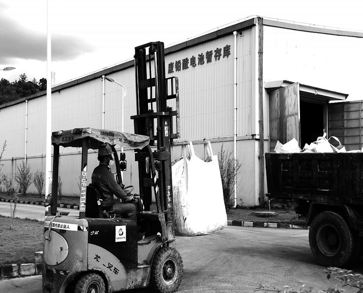 近日,台风逼近,厂区上空乌云密布。为确保危险废物入库万无一失,全力应对恶劣天气的到来,福化环保龙岩子公司一线员工驾驶叉车,紧盯叉臂上的危废吨袋,争分夺秒卸运危废吨袋,用行动筑牢安全防线。 (黄莉清 摄)