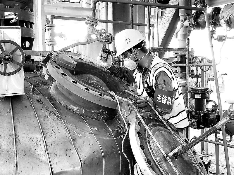 从球罐区的“把脉问诊”到管架上的螺栓拆装,从受限空间作业到动火焊接监护,党员干部始终冲锋在前,有的带头钻进闷热的球罐内部检查腐蚀情况,有的攀爬上30米高的管架确认作业条件,有的连续值守协调交叉作业,用行动诠释着“我是党员我先上”的担当。