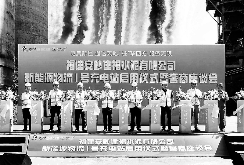 8月8日,福建水泥安砂建福厂区举行新能源物流1号充电站启用仪式暨客商座谈会。相关企业代表及50余位经销商、物流商齐聚一堂,共同见证传统水泥企业以“绿色+智能”双轮驱动的转型突破,开启合作共赢的崭新篇章。 (黄新伟陈楚娴 摄)
