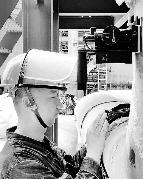 夏日炎炎,烈日当空。近日,在福海创公司大检修现场,专业检验人员顶着高温,全力投身压力容器、压力管道定期检验工作。 (徐志鹏 摄)