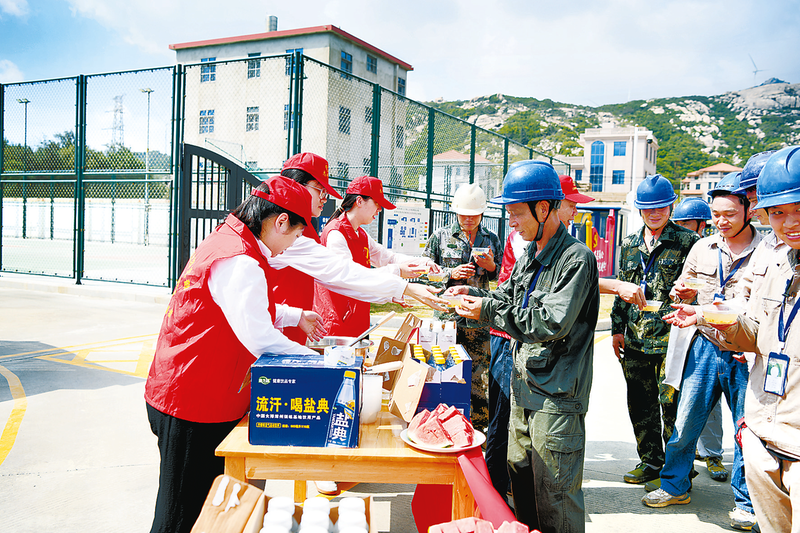 8月19日,三川风电公司组织志愿者前往年检现场,开展“送清凉”志愿服务活动,为检修人员送去了绿豆汤、菊花茶、西瓜等防暑降温物品。