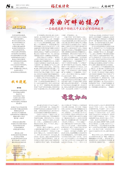 梦回儿时的小山村,我仿佛又看到母亲正背着年幼的我,深一脚浅一脚地走在蜿蜒崎岖的山间小路上。那是我的来处,是我最想念的,母亲那强有力的臂膀、挺立的背和身上温暖的气息。 (黄发灼)