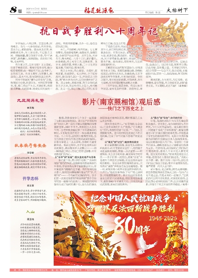 影片散场,走出影院,阳光亮得刺眼。我忽然想起导演在首映式上的一句话:“历史不是过去,而是未来的一面镜子。”让我们仍可以用日常的善良、对真相的坚持,去回应那台老相机的快门声,让历史继续显影,珍惜当下来之不易的和平稳定。(赖勇)