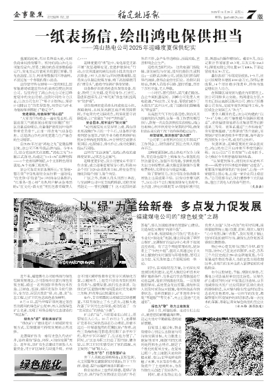 这份坚守终有回响——国庆刚过,国家能源局福建监管办的表扬信便送到该公司。信里肯定了鸿山热电公司在迎峰度夏中的突出贡献,这段时间的全力以赴,让该公司交出了“零非计划停运、零非计划降出力”的优异答卷,用责任与汗水为能源保供撑起了“稳定伞”。