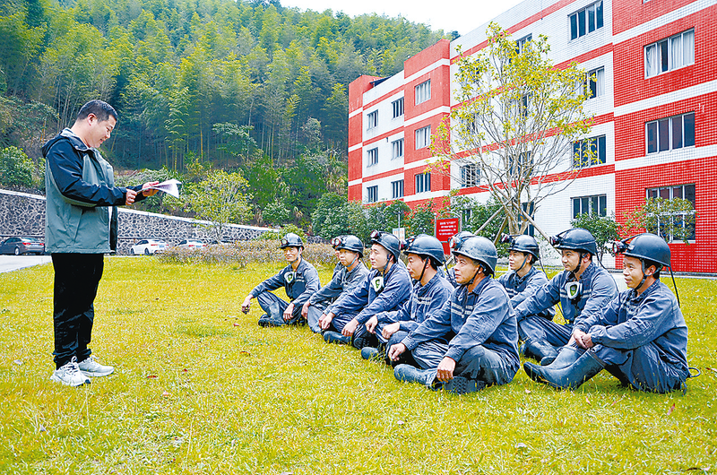 党的二十届四中全会召开后,永安煤业公司池坪芦坑煤矿通过会议、宣传栏、微信等形式组织学习宣贯党的二十届四中全会精神,掀起学习热潮。图为10月27日,该矿采掘队干利用入井前的时间,组织职工学习党的二十届四中全会公报。