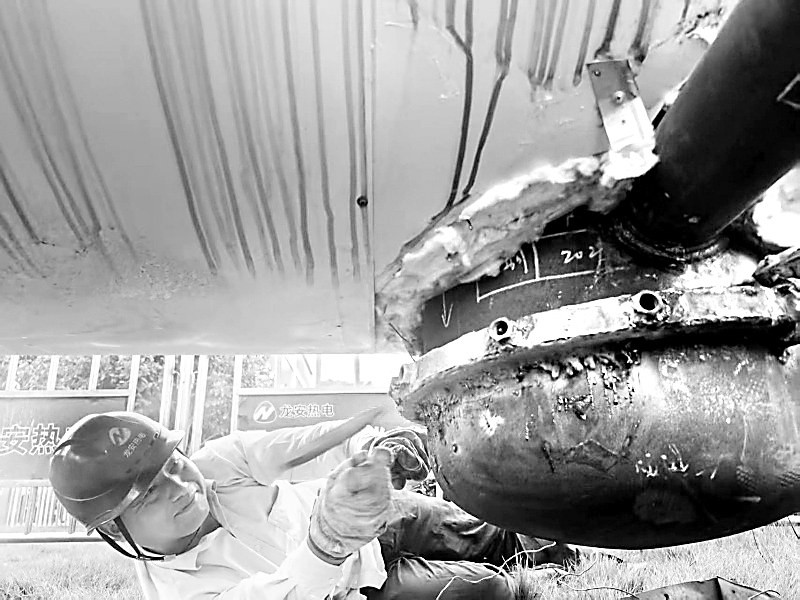 图为维修人在修复疏水罐