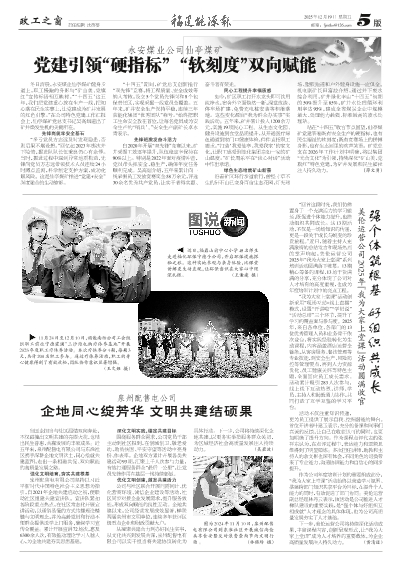 冬日清晨,永安煤业仙亭煤矿健身步道上,职工慢跑的身影与“矿山美、党旗红”宣传标语相互映衬。“‘十四五’这五年,我们把党建重心放在生产一线,把初心落在民生实事上,让党建成为矿井发展的红色引擎。”在公司特色党建工作汇报会上,仙亭煤矿党总支书记吴高烟道出了矿井焕发生机的关键所在。